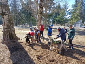 La classe était partagée en deux groupes avec une partie plus théorique qui expliquait les rôles des chiens de traineaux et une autre partie où les enfant ont pu monter derrière un attelage tirés par ces chiens.