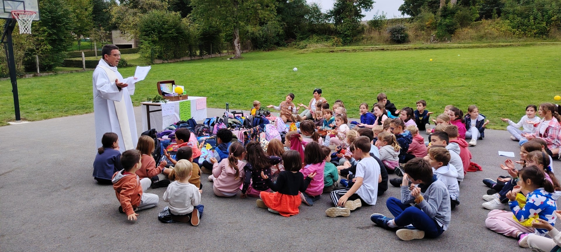 Le jeudi 18 septembre, l’école St Joseph était en fête. Le matin la célébration de rentrée avec le père Gaëtan a eu lieu dans la cour de l’école avec la bénédiction des cartables.